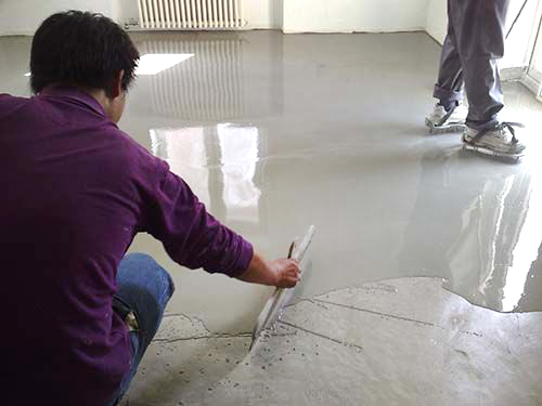 2、水泥自流平底漆:只要不積水、滲透就可施工,將水泥自流平底漆ke-50加入適量水,均勻涂刷地面,不可漏涂或過厚,用以增強素地強度及增 加涂層封素地的附著力;